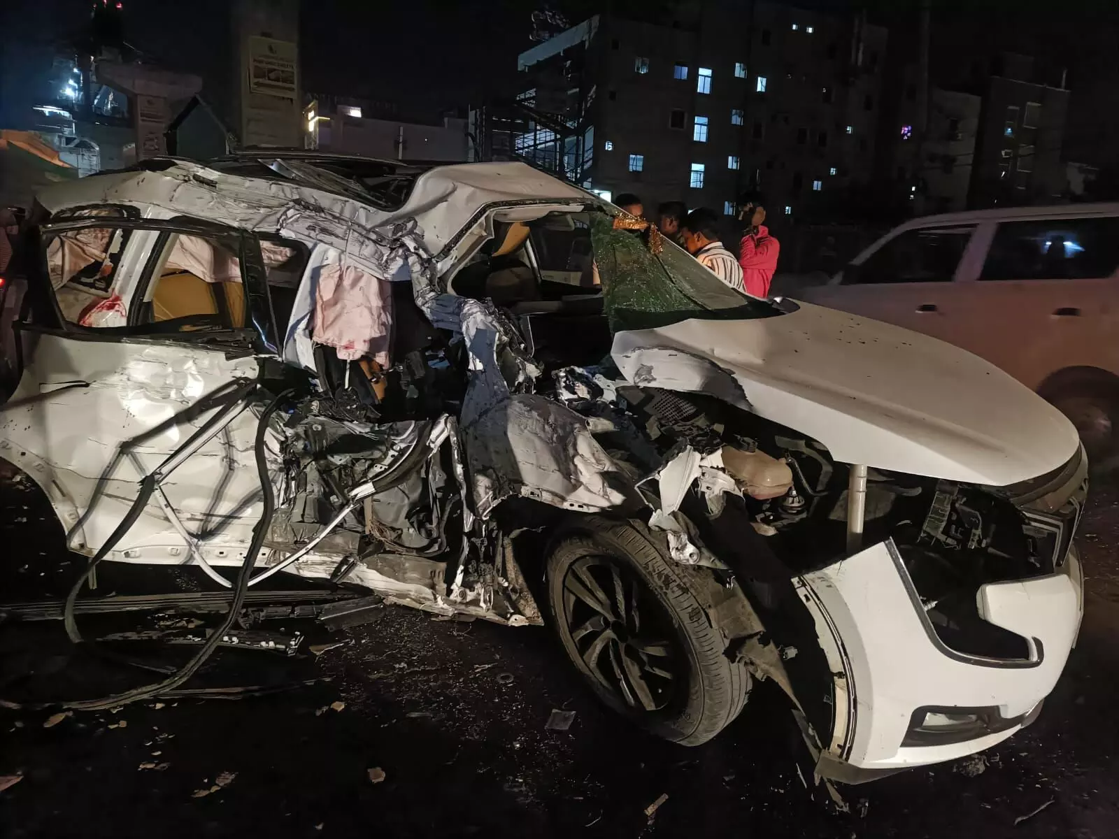 Hyderabad: Two engineering students lost their lives, and three others sustained serious injuries in a horrific car crash in the Medipally Police Station limits on Tuesday night.