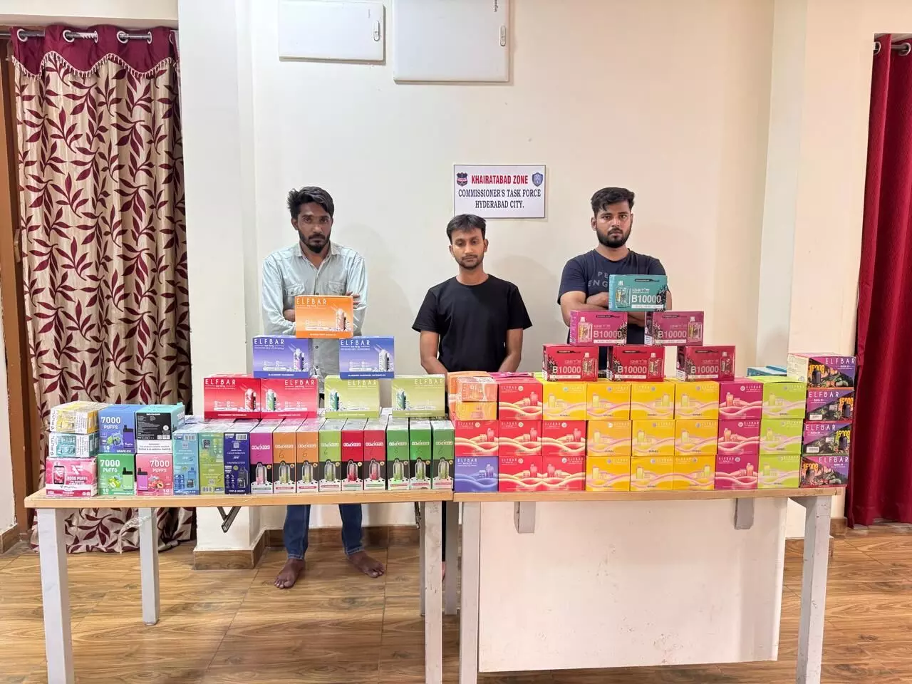 Hyderabad: In a major crackdown on the illegal sale of banned electronic cigarettes, the Commissioner’s Task Force (Khairtabad Zone), in coordination with Nampally Police, busted an organised racket operating in the city and apprehended three persons.
