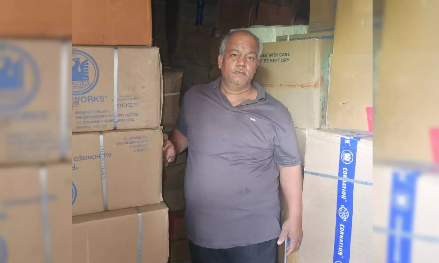 The accused, Abhimanyu Kumar Sharma, 54, who runs a firecracker business, was found storing a large quantity of explosive firecrackers without proper documentation. Authorities said storing such materials in a residential locality posed a severe fire hazard and endangered human lives and property.