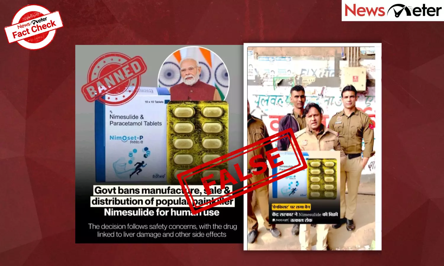 Multiple posts showing NimOset-P tablet with banned stamps along with Prime Minister Narendra Modi’s image have been shared across platforms.