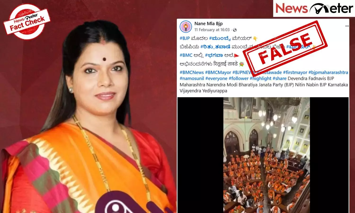 ಭಾರತೀಯ ಜನತಾ ಪಕ್ಷದ (ಬಿಜೆಪಿ) ರಿತು ತಾವ್ಡೆ ಮುಂಬೈನ 78 ನೇ ಮೇಯರ್ ಆಗಿ ಆಯ್ಕೆಯಾಗಿದ್ದು, ಫೆಬ್ರವರಿ 11 ರಂದು ಅಧಿಕಾರ ವಹಿಸಿಕೊಂಡರು. ಅವರು ಅಧಿಕಾರ ವಹಿಸಿಕೊಂಡ ನಂತರ, ಅವರು ಮುಂಬೈನ ಮೊದಲ ಬಿಜೆಪಿ ಮೇಯರ್ ಎಂದು ಹೇಳಿಕೊಳ್ಳುವ ಪೋಸ್ಟ್ ಸಾಮಾಜಿಕ ಮಾಧ್ಯಮದಲ್ಲಿ ವೈರಲ್ ಆಗುತ್ತಿದೆ.
