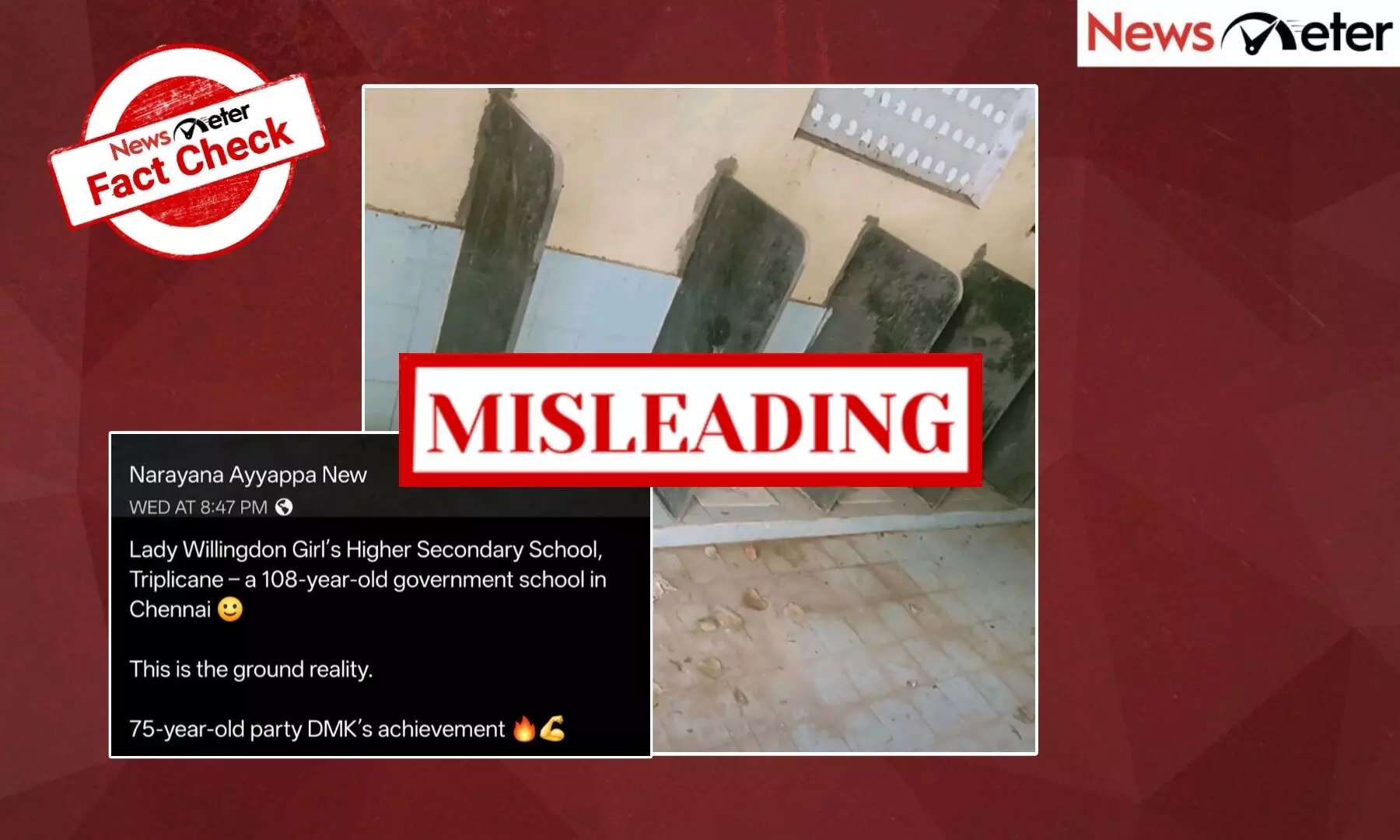 சமூக வலைதளங்களில் வைரலாகி வரும் திருவல்லிக்கேணி லேடி வில்லிங்டன் பள்ளி கழிப்பறை தொடர்பான புகைப்படத்தின் உண்மைத்தன்மையை கண்டறிய முறையான ஆய்வை மேற்கொண்டோம்.