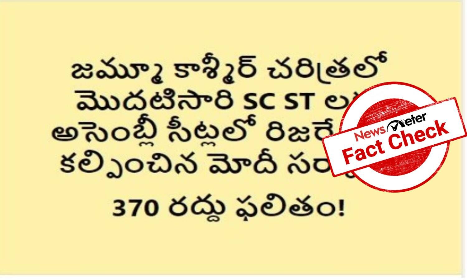 NewsMeter received the Telugu post on WhatsApp. When translated it reads, "For the first time in the history of Jammu and Kashmir, reservation for SCs and STs have been given in the Assembly seats."