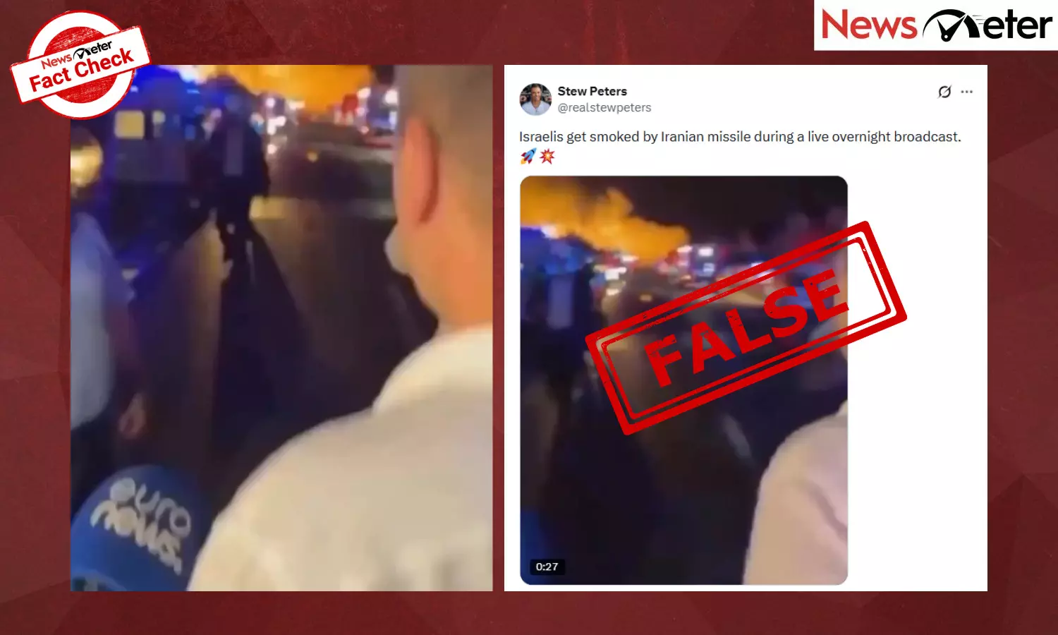A video surfaced on social media claiming to show an Iranian missile attack on Israel during live media coverage.