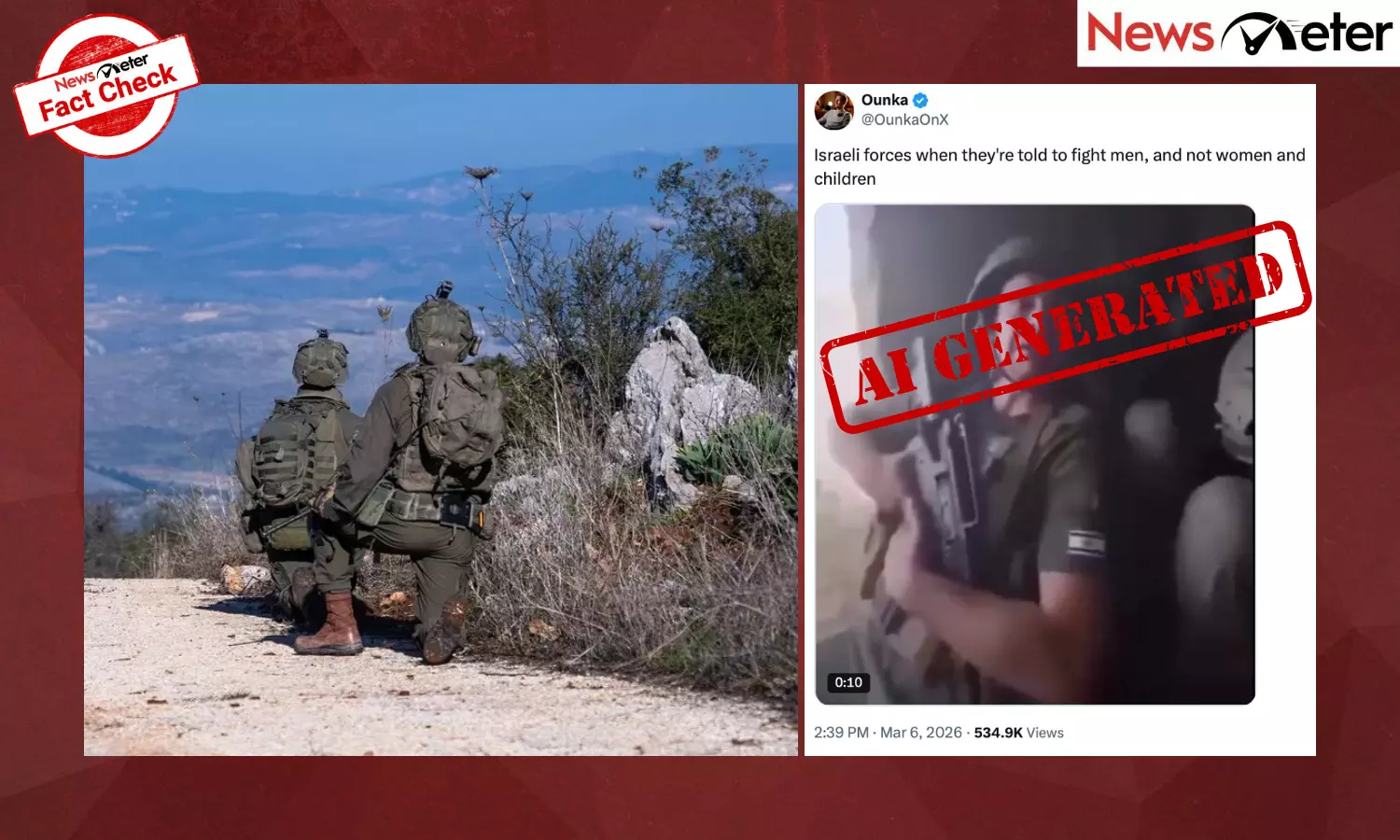Ever since the conflict began, similar fake clips of soldiers crying on the battlefield have gone viral. NewsMeter debunked a recent claim of an AI-generated clip of a US soldier crying and regretting the war.