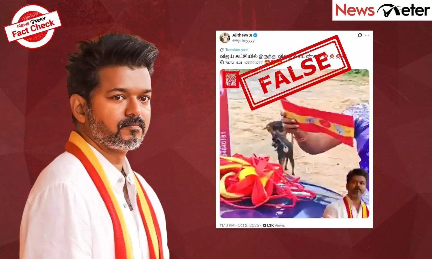 NewsMeter found that the claim is false. The video is from December 22, 2024, when a few women functionaries took down the TVK party flags in protest, alleging that they were not given due respect.