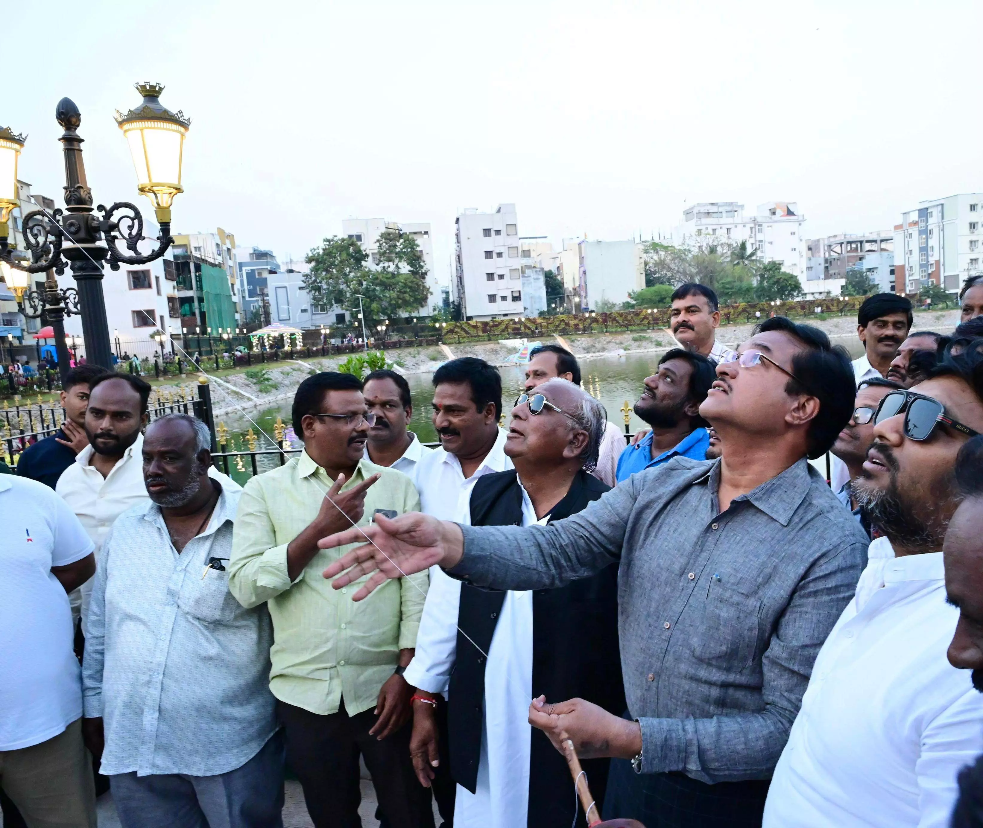 The kite festival, organised by locals on the banks of the rejuvenated lake, was attended by AV Ranganath, Commissioner of HYDRAA, who actively participated in the celebrations.