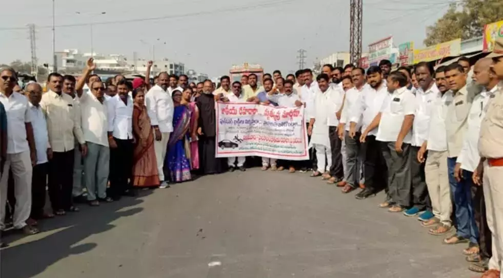 The agitators demanded the immediate construction of foot overbridges on the Hyderabad–Vijayawada Highway to ensure pedestrian safety.