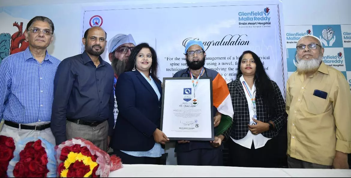 Hyderabad: Dr Sohail Anjum, a Hyderabad-based surgeon associated with Glenfield Malla Reddy Brain and Heart Hospital on Chapel Road, has entered the Indian Book of World Records for performing what has been described as a first-of-its-kind cervical spine tumor surgery using a new anesthetic approach.
