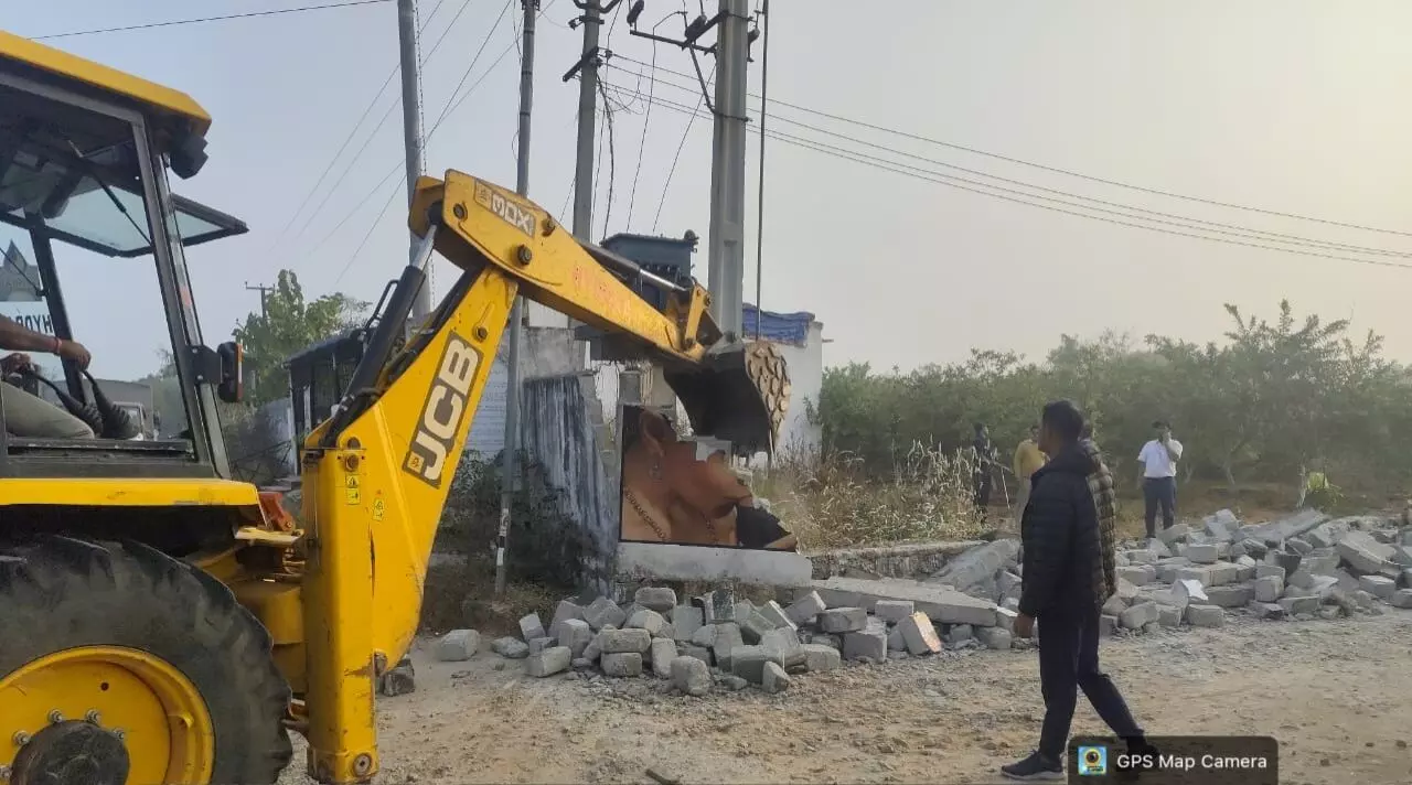 Acting on a complaint lodged by the Divyanagar Singarenians Welfare Society, HYDRAA dismantled a nearly one-km-long compound wall that had encroached about 13 feet into a 40-foot-wide road. The wall was constructed by claiming the road portion as part of the adjacent agricultural land.