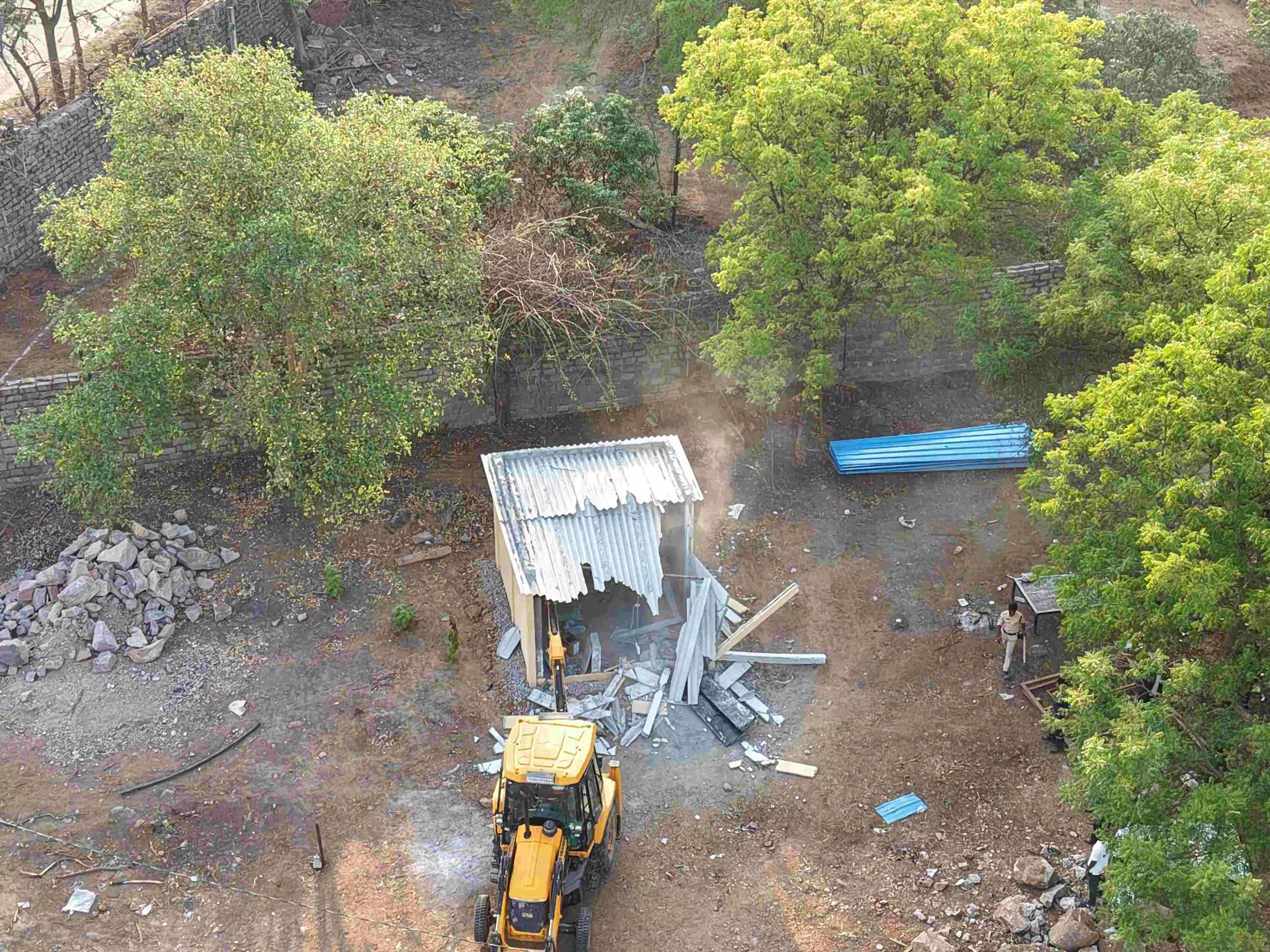 Meanwhile, the HYDRAA also carried out demolitions in Katedan, removing structures that had encroached upon roads in the Indira Society colony. Attempts to illegally occupy plots and roads in layouts were prevented.