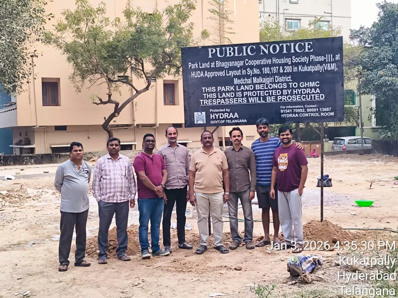 Hyderabad: HYDRAA on Saturday reclaimed and secured two park sites spread over 3,000 square yards in the Kukatpally area. The market value of the protected land is estimated at around Rs 35 crore.