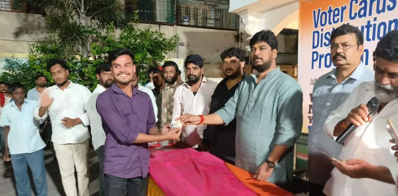 Hyderabad: Madhura Nagar police have registered a case against Congress leader Naveen Yadav for allegedly distributing fake voter ID cards in the Yousufguda area.
