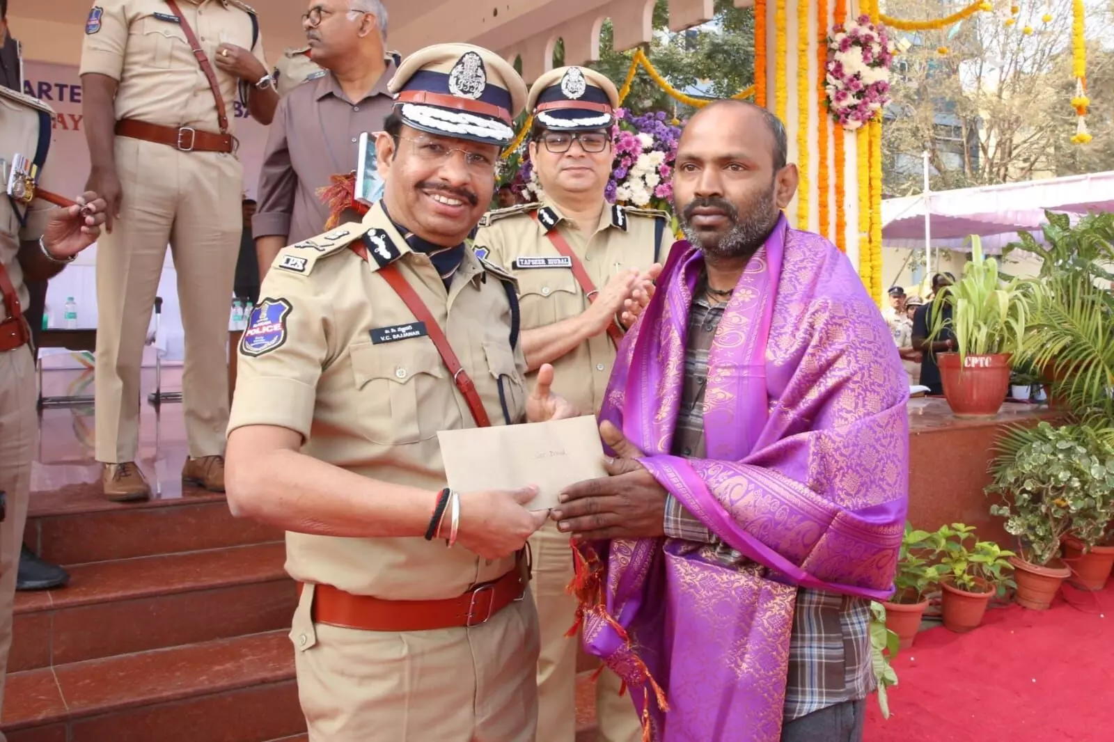 Hyderabad: Police Commissioner VC Sajjanar on Monday honoured Dinesh, a resident of Afzalgunj, for his exemplary courage in rescuing people trapped during the devastating fire at a furniture shop in Nampally on Saturday.