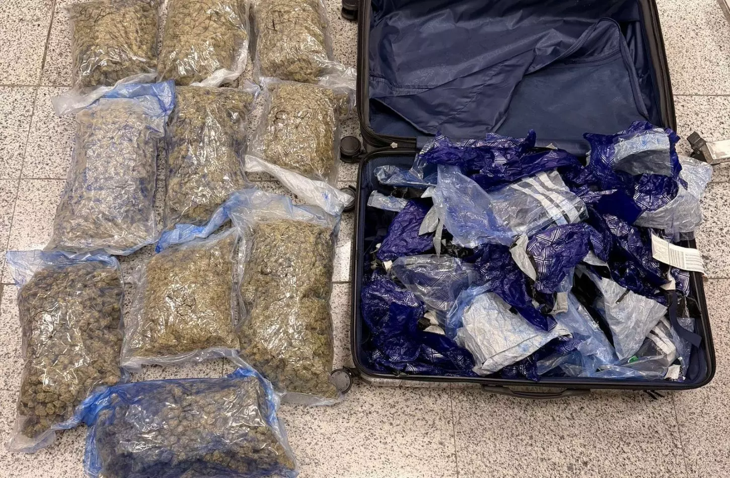 During a detailed examination of the passengers’ luggage, officials recovered multiple packets containing a greenish, lumpy substance. Preliminary testing confirmed the substance to be hydroponic weed, a high-potency variant of cannabis.