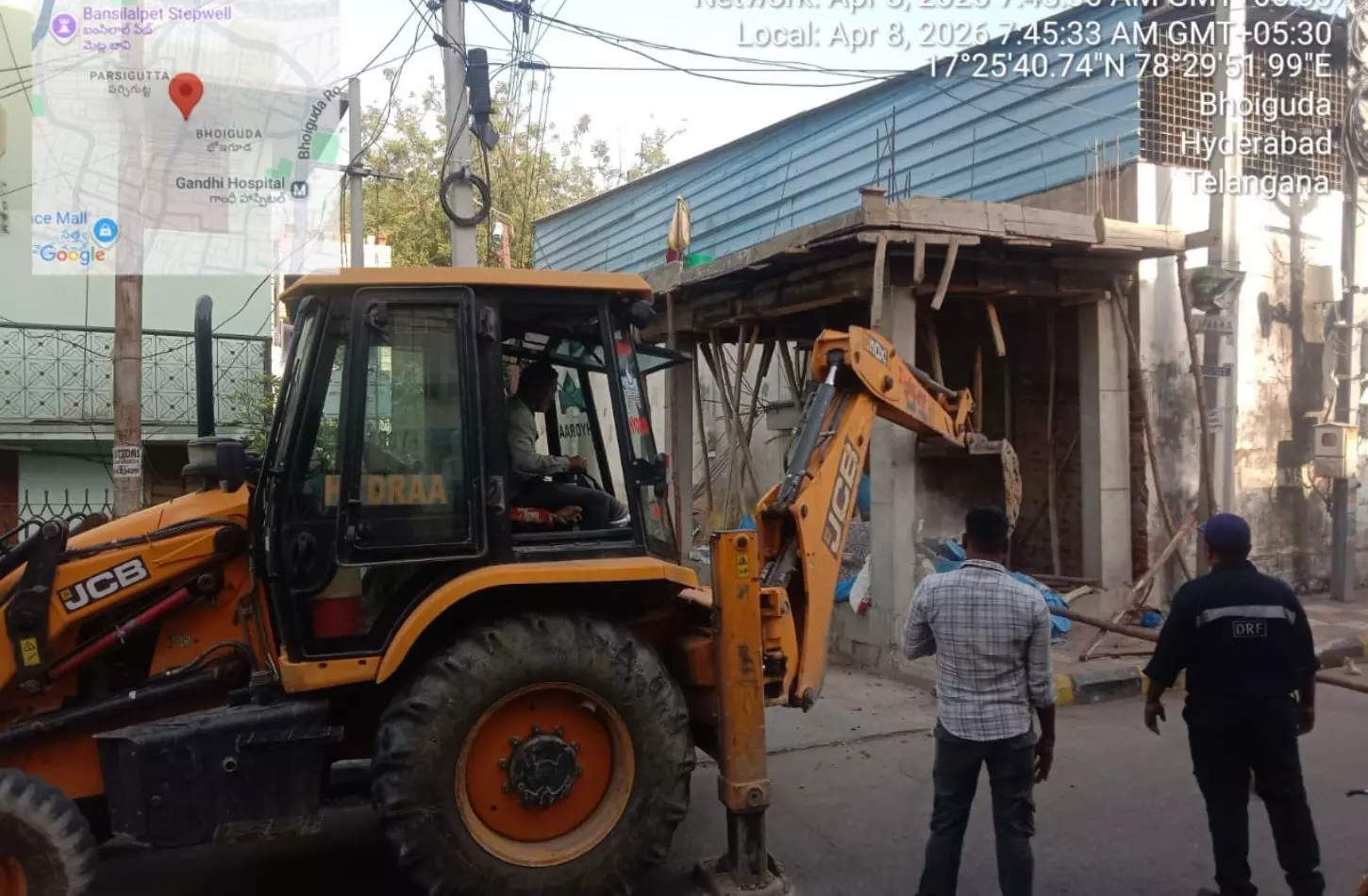 Hyderabad: In a swift civic action, HYDRAA removed an under-construction building that had encroached upon a 20-foot-wide road in New Boiguda, Bansilalpet village in Secunderabad, restoring smooth passage for residents and vehicles.