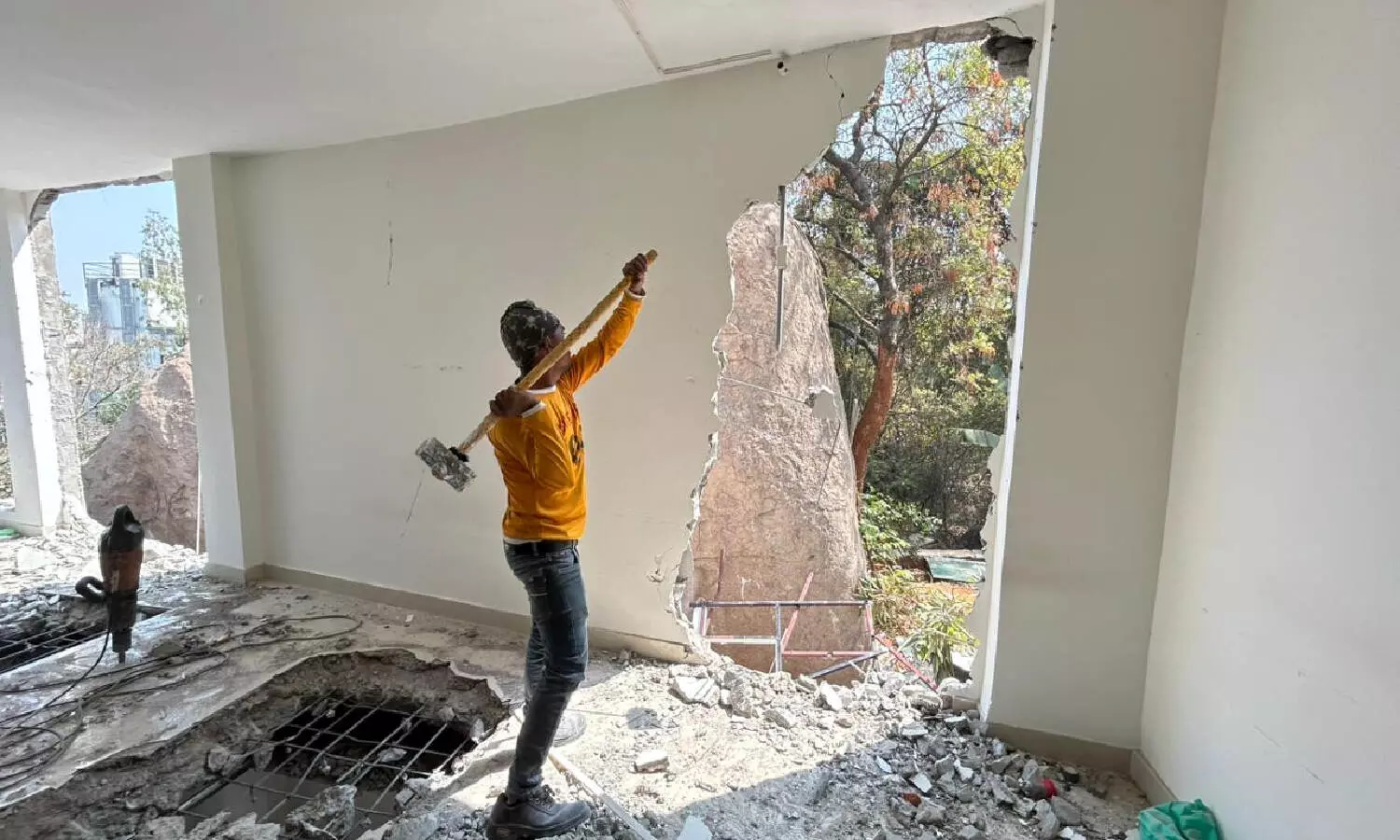 On Wednesday, authorities demolished the three-storey illegal structure, restored the park boundaries, erected fencing, and filed a police case against those responsible.