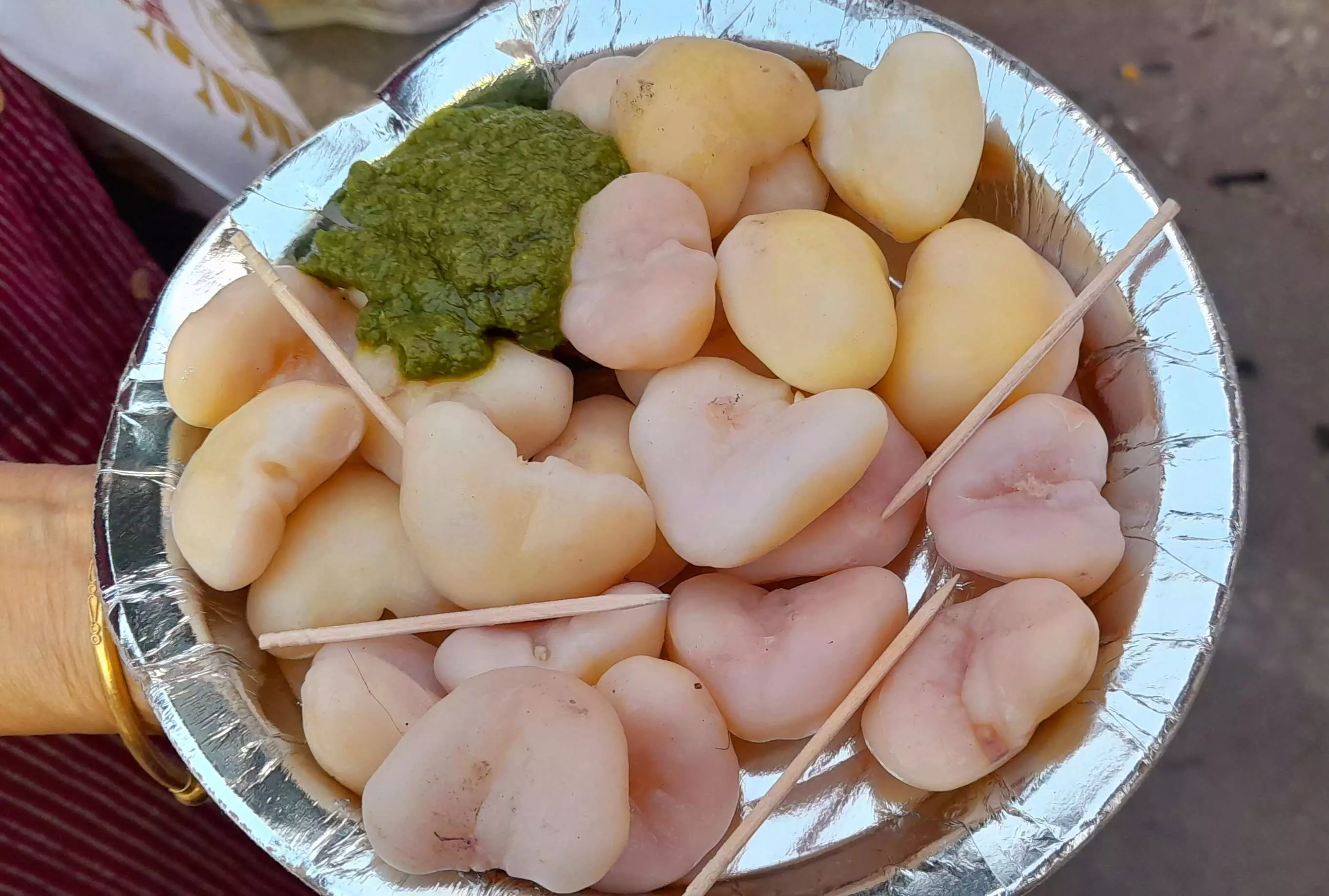 In season, water chestnut lovers can find boiled water chestnuts with tangy chutneys sold by hawkers on the street.