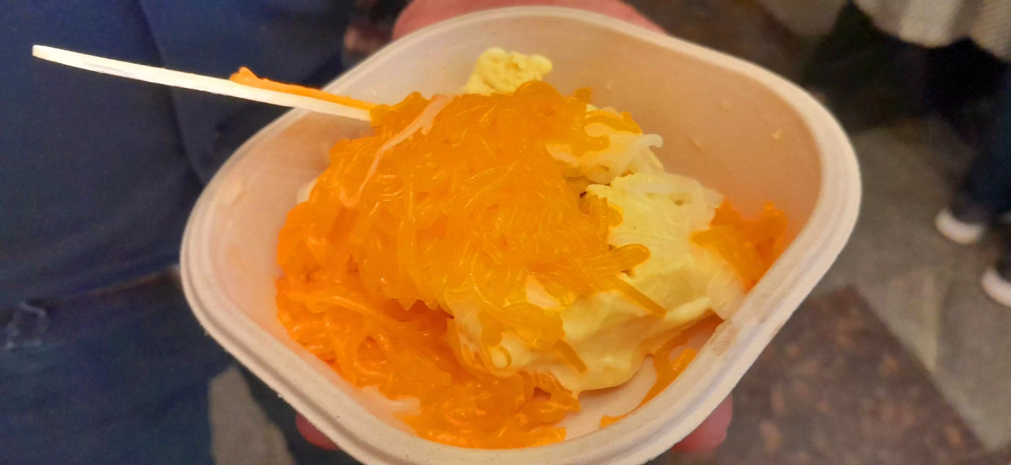 It is a winter specialty and refers to an airy, creamy dessert made from milk froth and saffron. It is light as a cloud and melts in your mouth.