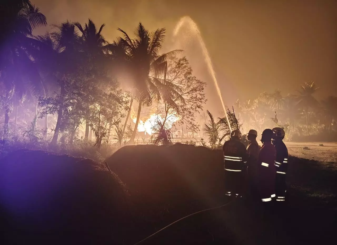 Locals reported that nearly 500 coconut trees were burnt, with extensive damage to crops and aquaculture. The full extent of losses will be assessed once the fire is brought under control.