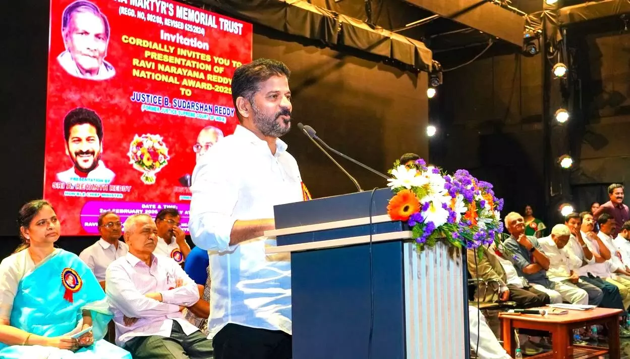 Revanth Reddy expressed satisfaction over the Ravi Narayana Reddy National Award being conferred on former Supreme Court judge B. Sudarshan Reddy, calling it a fitting recognition.