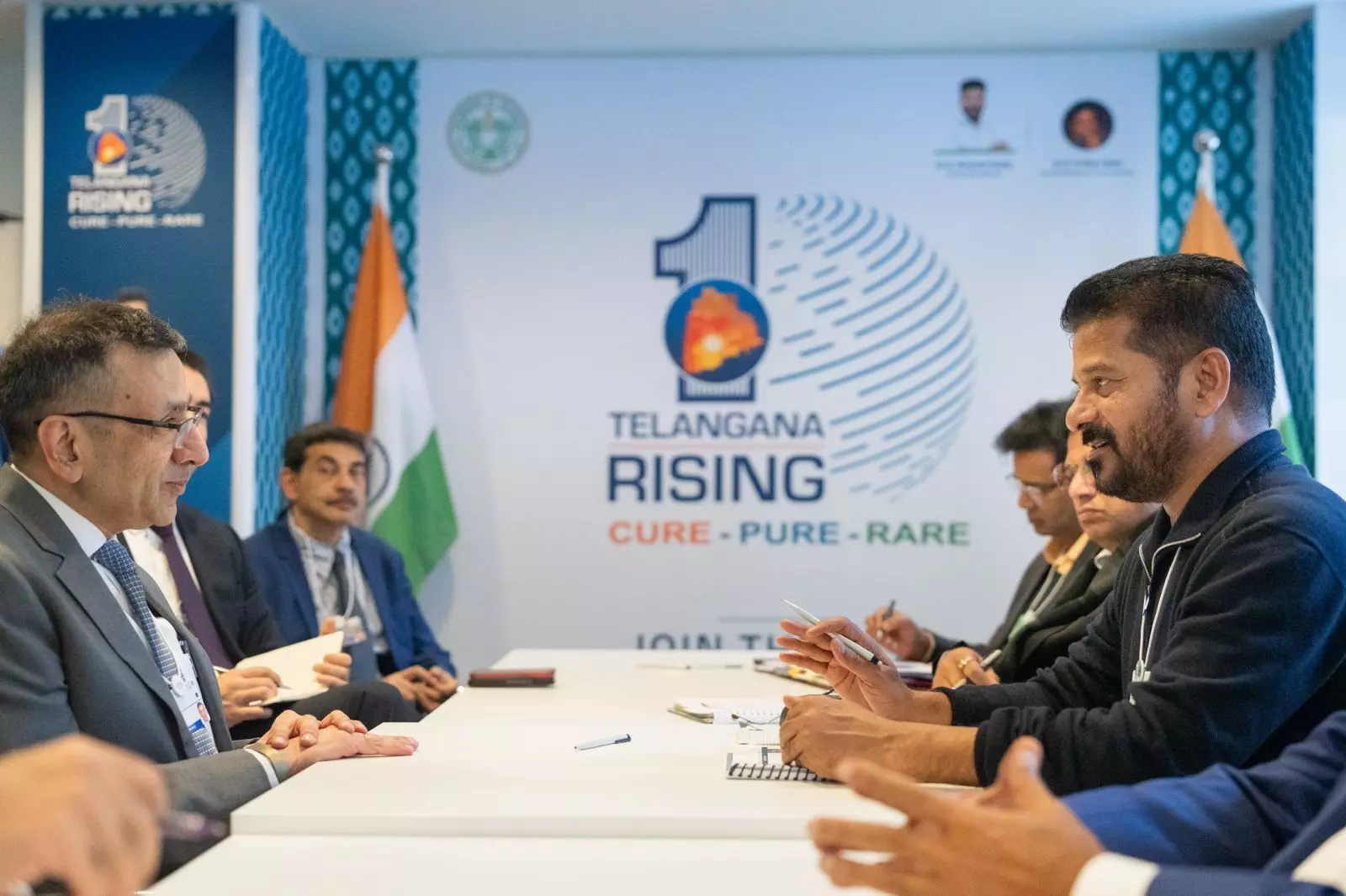 In a meeting at the World Economic Forum, Chief Minister A Revanth Reddy met with Google’s APAC president, Sanjay Gupta, to map out a collaboration on Artificial Intelligence and sustainable growth.